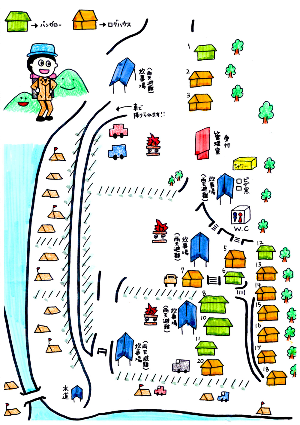 ★オートキャンプの区画は川沿いに広がっています★